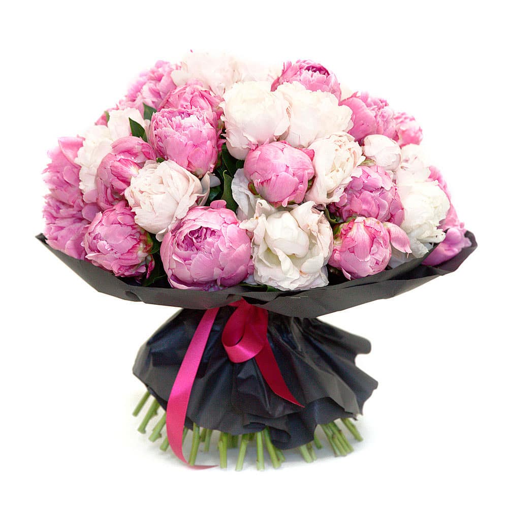 Пион розовый и белый. Упаковка (лента, пленка, крафт, сетка, пленка матовая)
