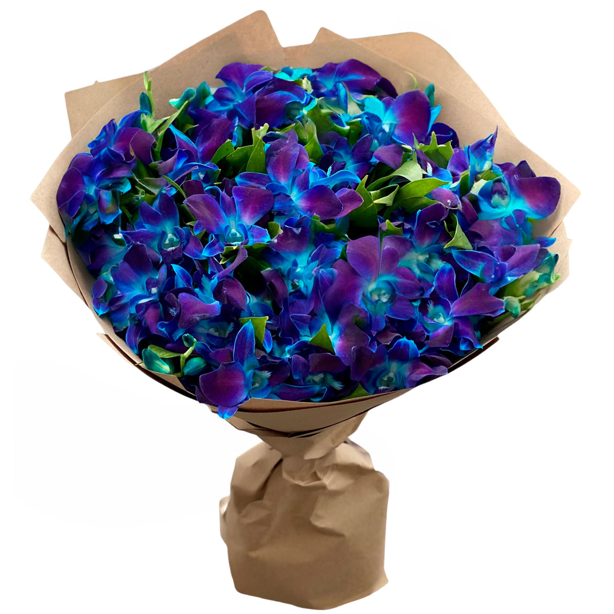 Дендробиумы синие. Упаковка (лента, пленка, крафт, сетка, пленка матовая)