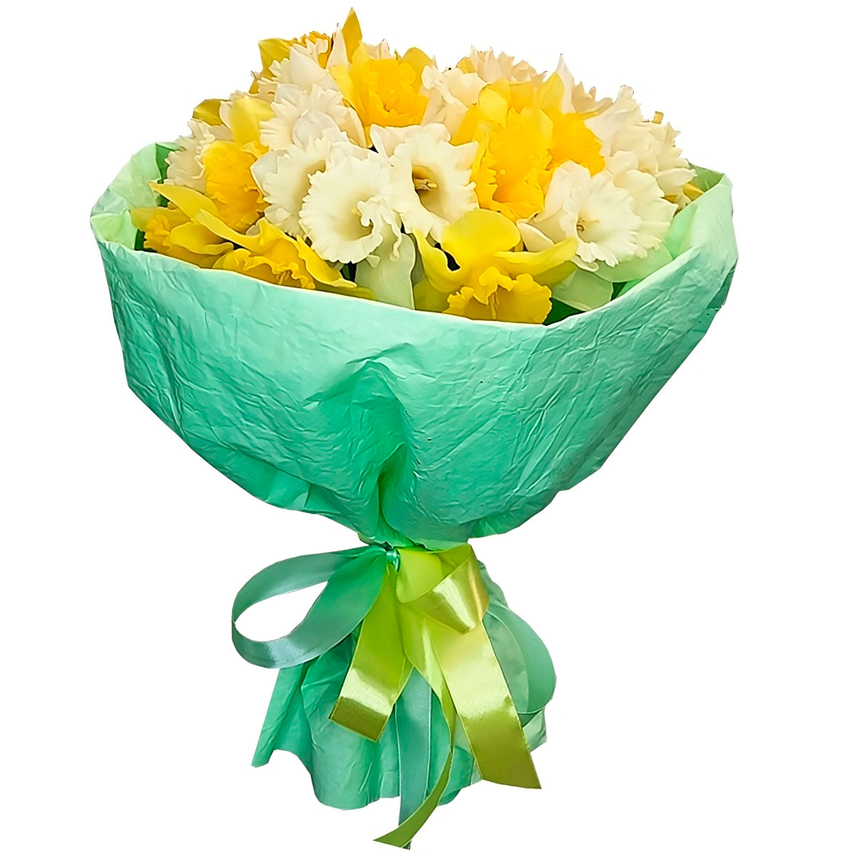 Нарцисс белый и желтый. Упаковка (лента, пленка, крафт, сетка, пленка матовая)