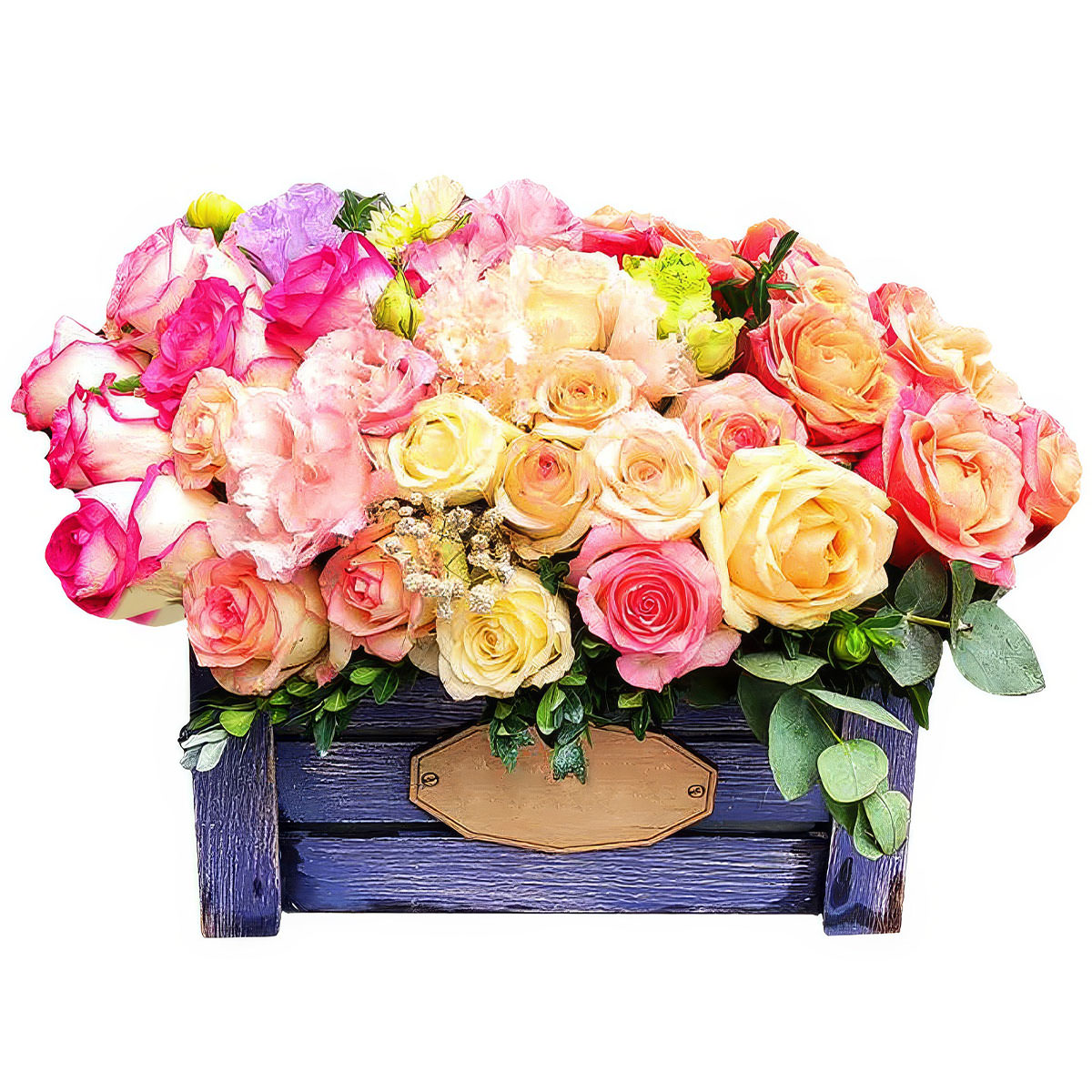 Композиция в ящике «Излучающий тепло» с доставкой по г Химки: вы можете заказать букет в цветочном интернет-магазине «Флормания» по цене от 3190 руб.
