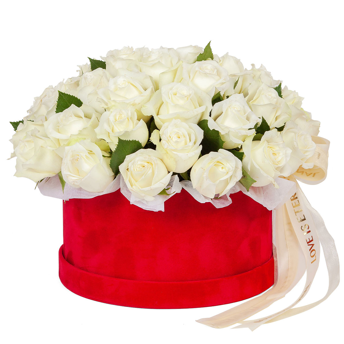 Роза одноголовая белая. Упаковка (шляпная коробка, квадратный бокс, коробка сердце, оазис)