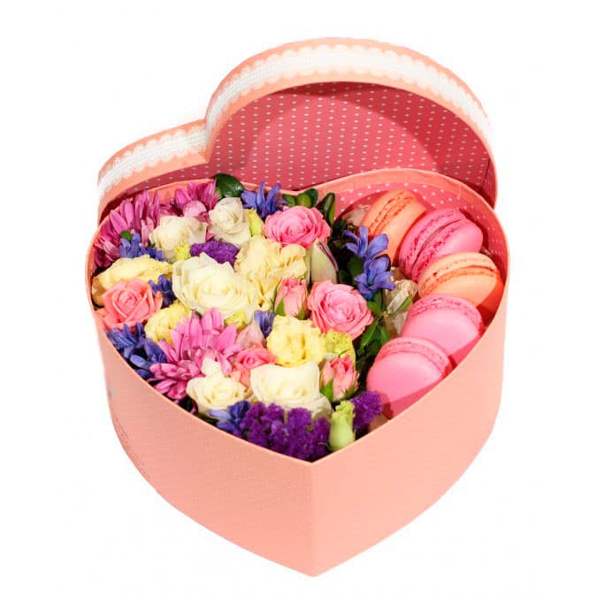 Цветы в коробке «С печеньем» с доставкой по г Химки: вы можете заказать букет в цветочном гипермаркете «Флормания» по цене от 2890 руб.
