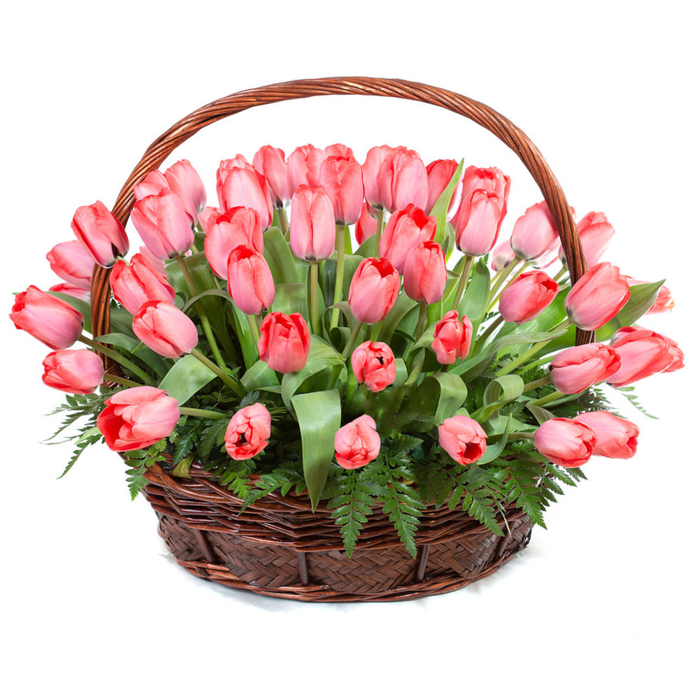 Цветы в корзинке «Розовые тюльпаны» с доставкой по г Химки: вы можете заказать букет в цветочном салоне «Флормания» по цене от 3190 руб.