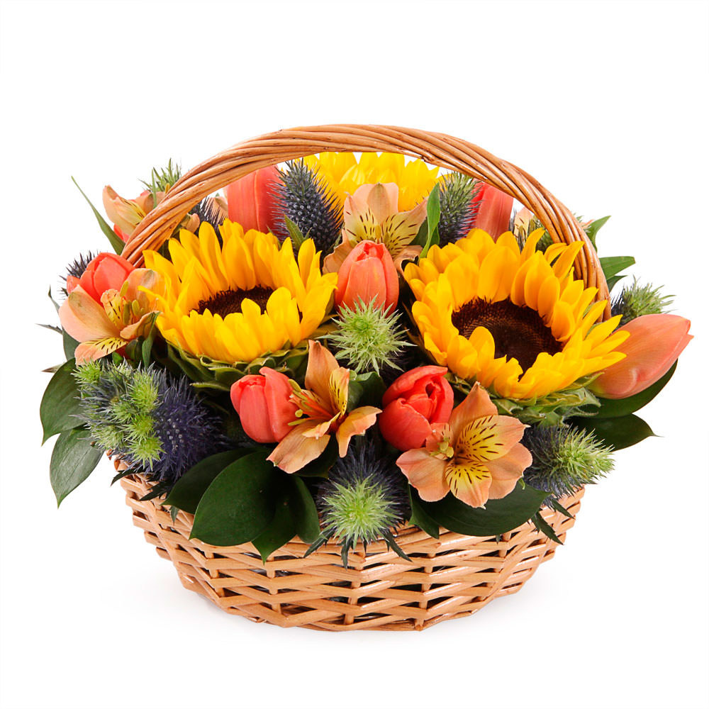 Цветы в корзинке «Солнечный день» с доставкой по г Химки: вы можете заказать букет в супермаркете цветов «Флормания» по цене от 3190 руб.